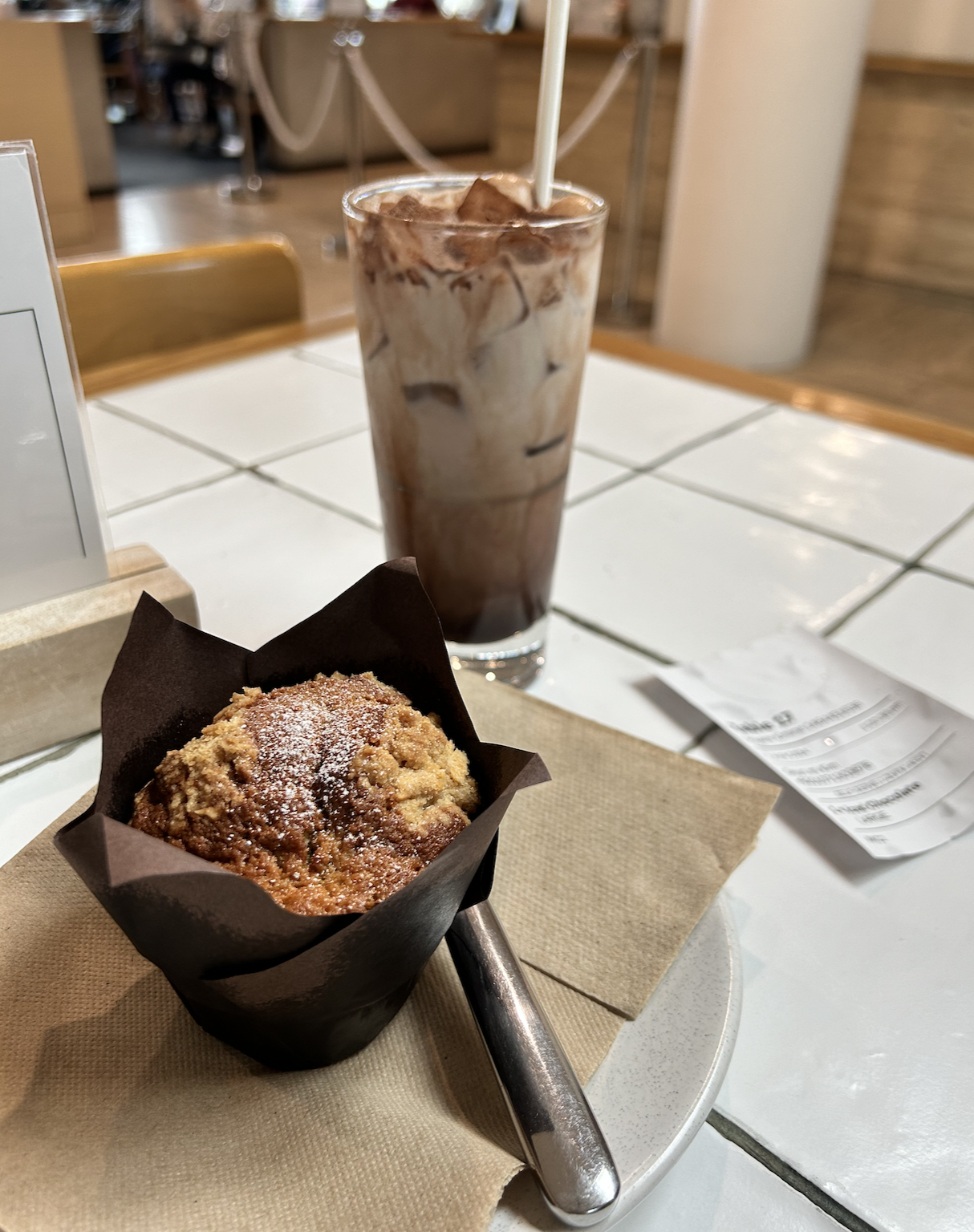 1์ธต๋ง ๊ตฌ๊ฒฝ ๋คํ๊ณ ์๋์ธต์ผ๋ก ๋ด๋ ค๊ฐ์ , ์นดํ์์ ์๋ฃ์ ๋นต์ ๋จน์๋ค.
